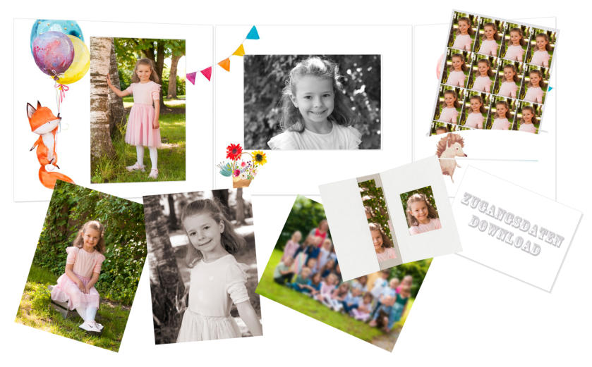 - auf Wunsch, den Download der 4 Bilder vom Kind je in